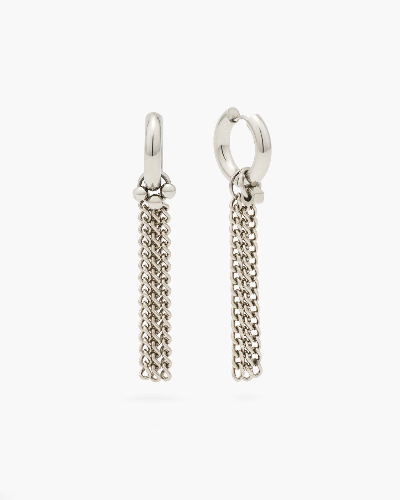 Boucle d'oreille en acier inoxydable argentée. Chaîne vintage (1951) en laiton palladié. Vendue à l'unité ou en paire.