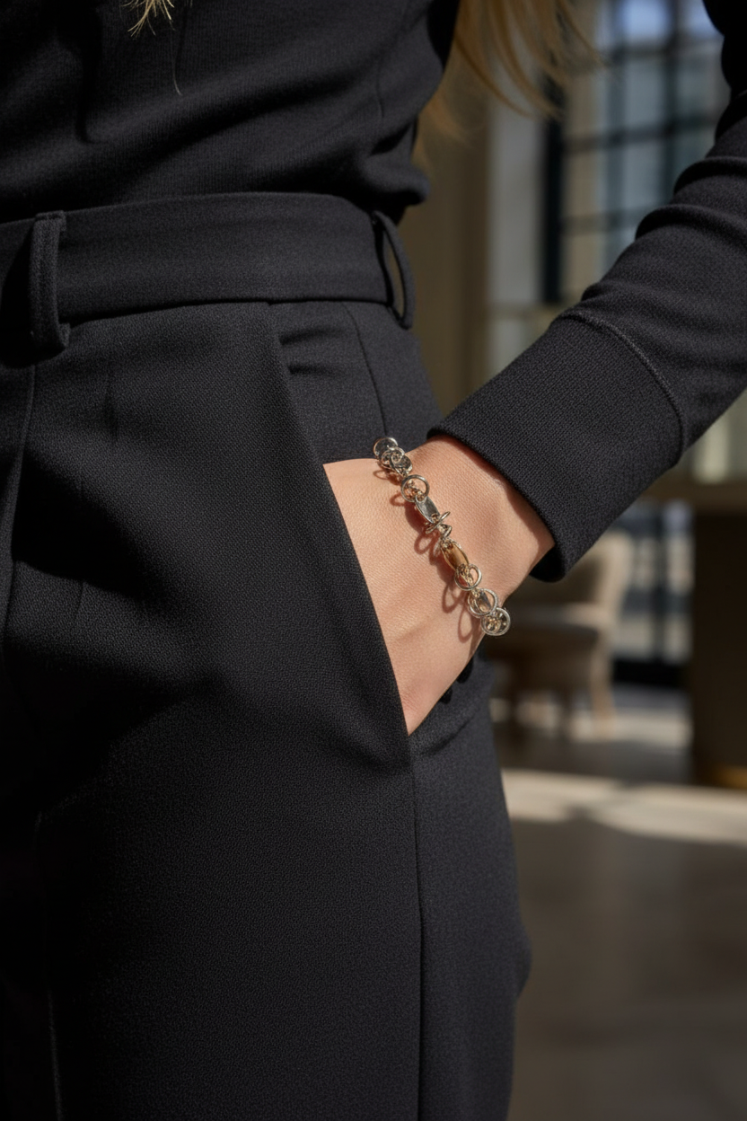 Découvrez le bracelet "LILOU", un bracelet créé à partir d'une chaîne vintage en plaqué or redoré à l’or pâle. Des anneaux viennent pimper ce bracelet.