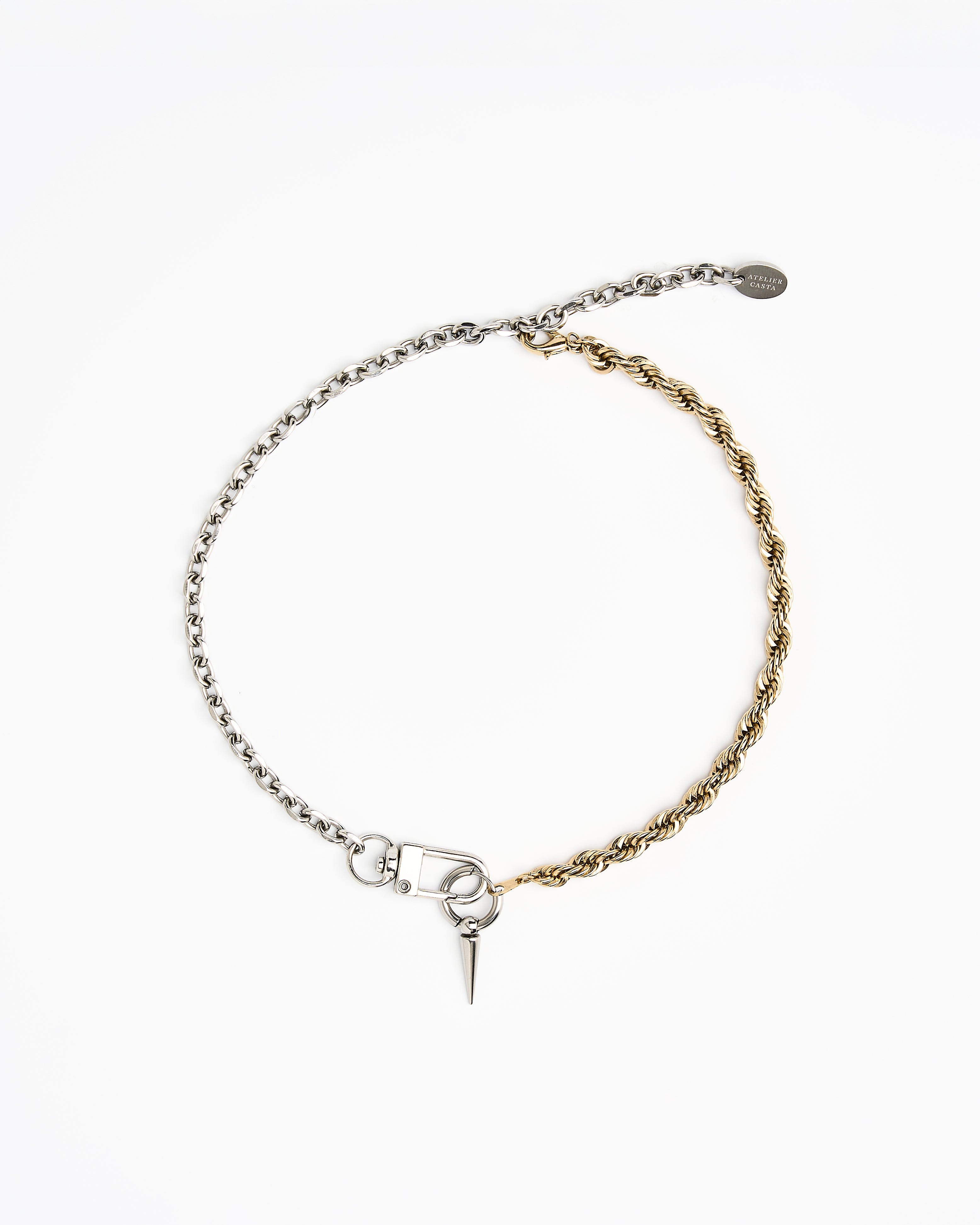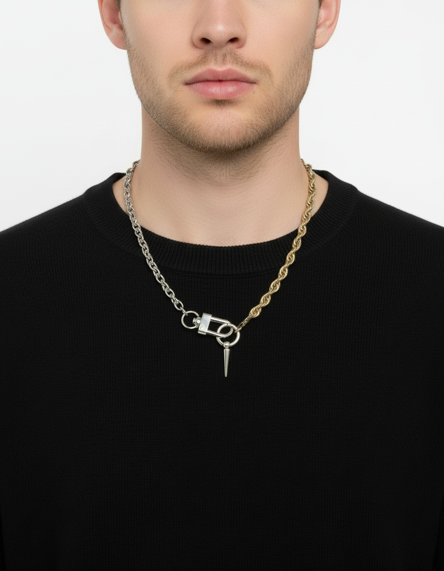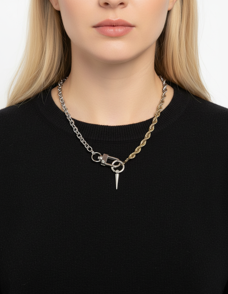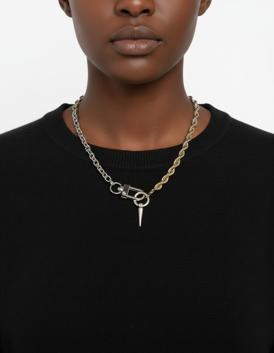 La chaîne se pare d'une boucle d'oreille amovible— à déplacer, retirer, transformer en boucle d’oreille. Une pièce libre, créative, pensée pour celles et ceux qui aiment composer leur style.