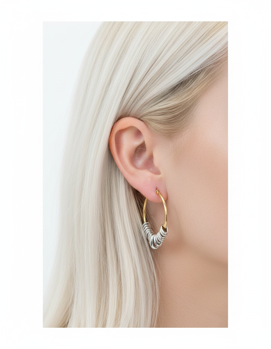 Créole individuelle ovale en acier inoxydable dorée. Pimpée avec une chute de chaîne vintage en acier magnifiée par un bain de palladium.